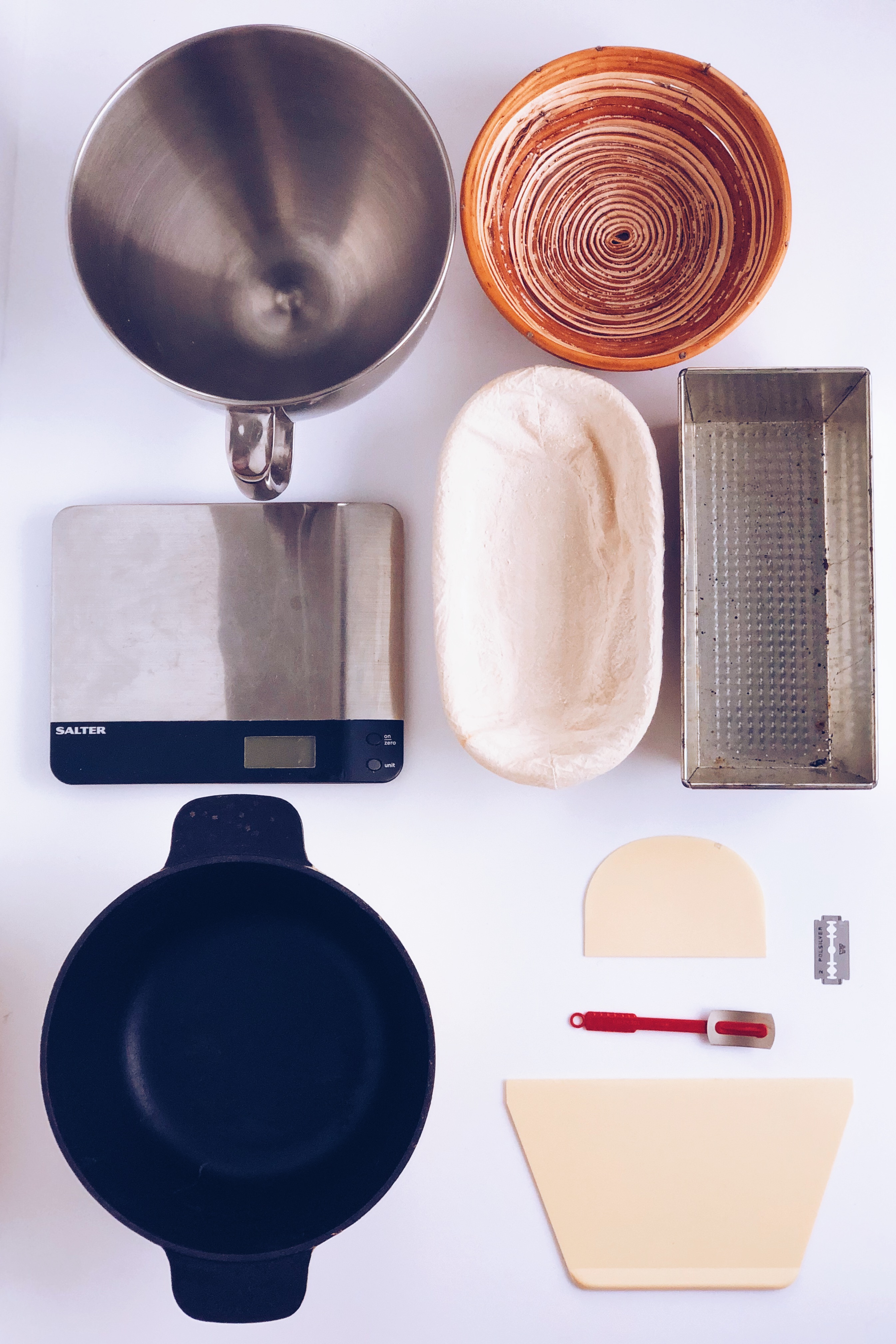 Nie od początku mojej przygody z pieczeniem chleba z nich korzystałam. Jednak gdy już zaczęłam, uwielbiam z nimi pracować. Są zaokrąglone lub w kształcie trapezu. Tymi zaokrąglonymi najlepiej wybierać ciasto z miski. Trapezowe pomagają w formowaniu bochenków. Czy są niezbędne? Niekoniecznie, ale gdy wkręcicie się w pieczenia chleba warto je kupić, drogie nie są. Klik.