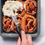 - Po ostygnięciu dodać do granoli drugą połowę chipsów kokosowych oraz maliny.